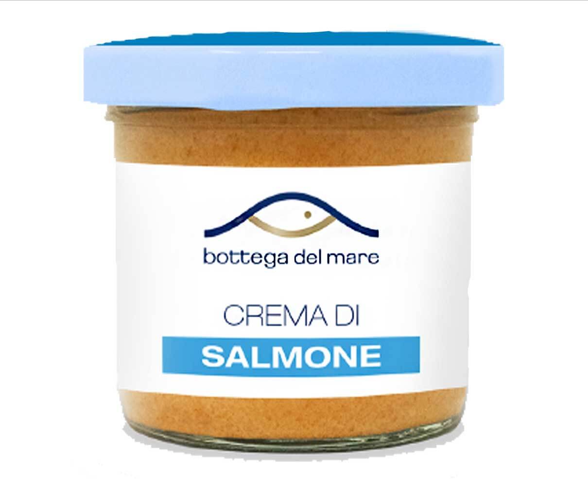 Crema a base di salmone in olio di oliva, vino bianco e colorato con del pomodoro. Conserva alimentare di matrice cremosa, crema di pronto utilizzo preparata con salmone affumicato. Crema di salmone pronta all'uso, dal gusto delicato e versatile. Ideale per antipasti da ristorante. Golosa crema snack, a base di salmone fresco.